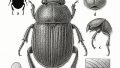 88号表紙に使用されたヒメチャイロコガネの画はこの報告の付図として描かれたものです。氏が採集された甲虫の中で最初に新種になった種であるとか。