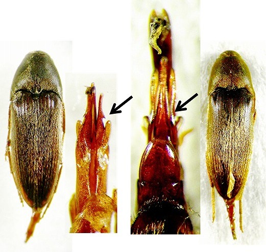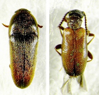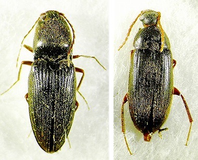 (左から、エノキコメツキダマシ、ホソニセクビボソムシ)