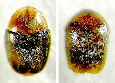 (左から、フタモンミジンムシ、ムクゲミジンムシ)