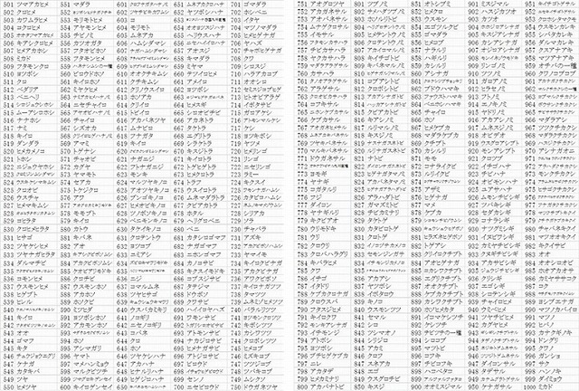 (高良山甲虫リスト、上: 1-500、下: 501-1000)