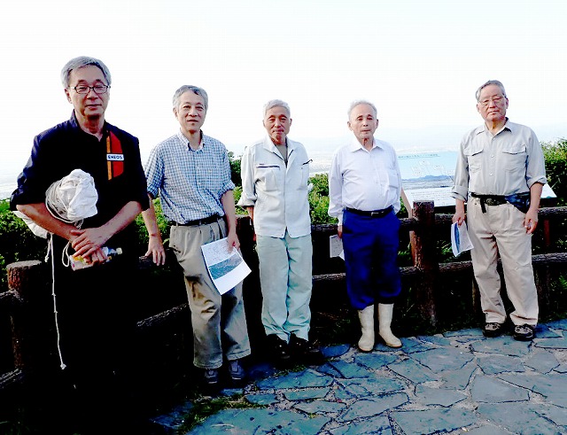 (駐車場での集合写真、左から、斉藤、大塚、國分、小旗、城戸の各氏)