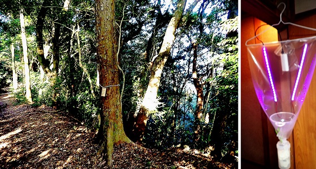 有馬さんは、駐車場から左下の、ハイキングコースを2-30mほど下ったあたり(E地点)にも、UVライトFITを下げられていました。