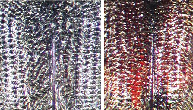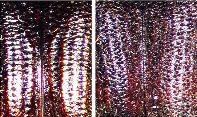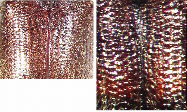 (上翅表面の点刻、左から、S. sp.1♂、S. sp.2♂)