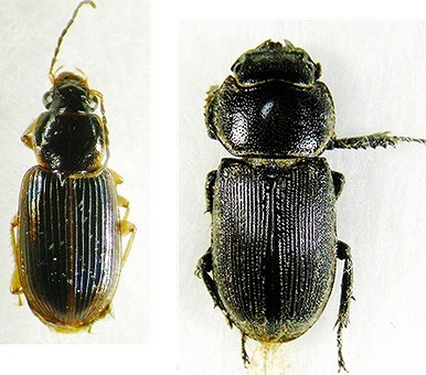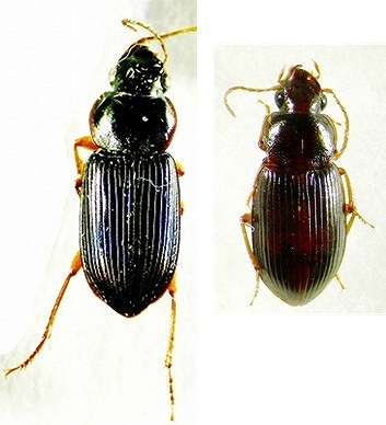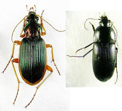 (左から、オオキベリアオゴミムシ、トックリゴミムシ)