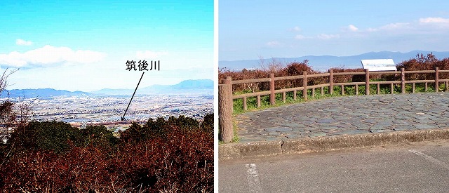駐車場の北端は、展望台にもなっていて、筑後川を含む筑後平野北部(久留米~大刀洗町~小郡~朝倉)が眺望できます。
