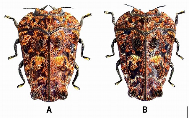 この両種は、上翅の斑紋の数以外は良く似ていて、時に、変異があることから、他に区別点が無いか、調べてみたそうです。