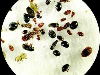 (1月に落ち葉篩いで採集した甲虫類、時期にしては色々見られた)